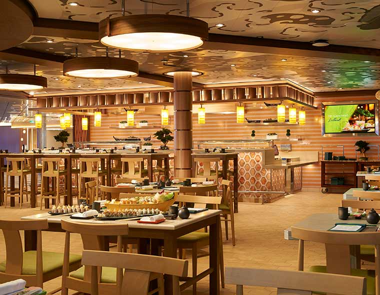 Bonsai Sushi: Dine amidst expertly pruned bonsai trees while enjoying sit-down service and an affordable menu of delectable catches, plus soups, sides, sakes, and desserts. This restaurant is available for an additional cost. *Image shown is an artist's rendering.