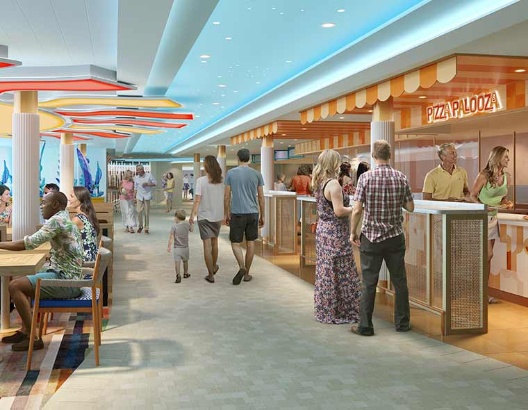Lido Marketplace: Featuring an amazing variety of casual dining spots, each just a few flip-flopped steps from the last, Lido Marketplace always has a special something ready to satisfy your latest craving spectacularly. Here Carnival does it with dozens of what-to-eat options... great choices like BBQ, a deli counter, salad bar, an Asian station and a pasta bar... plus one spot where the chef serves up a different surprise daily! At Lido Marketplace, there's tons of indoor and outdoor seating made for gathering around, so you can enjoy your personal faves in your favorite company for lunch or dinner, or even breakfast! Lido's also where you can find soft serve, frozen yogurt and fresh pizza 24-hours a day.