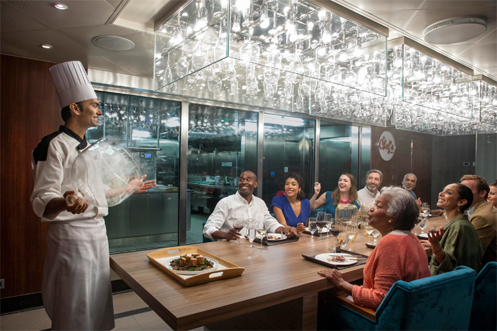 The Chef’s Table: Treat your taste buds to unique culinary event hosted by one of Carnival's master chefs. Your VIP experience begins with cocktails and hors d’oeuvres for a select group of 14, followed by a galley tour. The evening’s highlight is a full-service dinner of amazing appetizers, entrees and desserts not found on the regular menus. Seating is limited, so reserve early at the ship’s Guest Services desk. This restaurant is available for an additional cost.