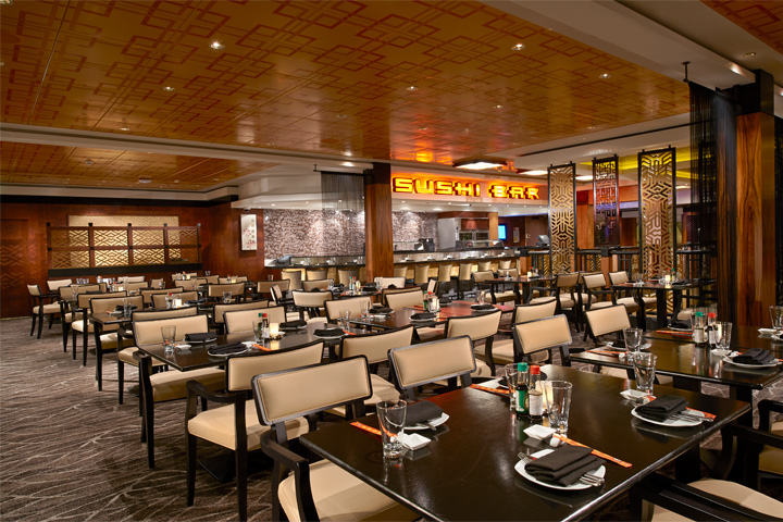 Sushi: Take a seat at the sushi bar and watch in amazement as chefs expertly slice, carve, and roll the freshest ingredients into works of delicious art. This restaurant is available for an additional cost.