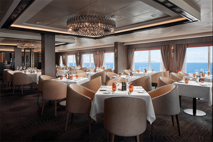 Palace: Sit back, relax and embark on a culinary adventure inside this complimentary Main Dining Room. From more options on the daily changing menus to a Chocoholic Night available once per sailing featuring specialty chocolate-based desserts, Palace has something for the foodie in everyone.
