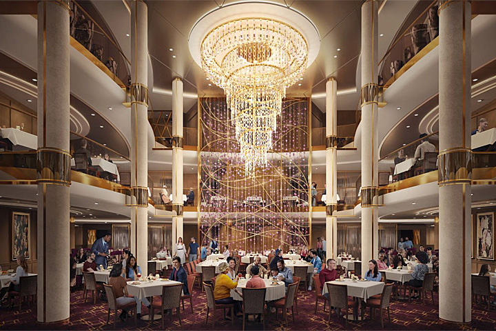 Dining Room: Share your favorite moments of the day over your favorite meal in the Dining Room. Each night onboard brings a delectably different three-course theme to taste your way around the world together — with rotating flavors from Jamaica to Jaipur and signature Royal Caribbean® recipes loved by all. Expand your palate with dishes like buttery escargot or fill up on familiar faves like spaghetti Bolognese. Or, dress up any evening with options like Maine lobster tail and filet mignon.