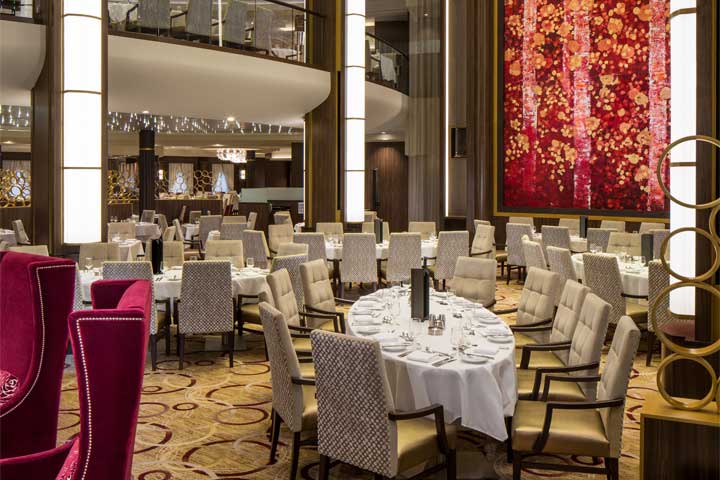 Main Dining Room: Enjoy an expansive menu of delicious dinner options in early and late seating dining. Also available is the flexible My Time Dining program.